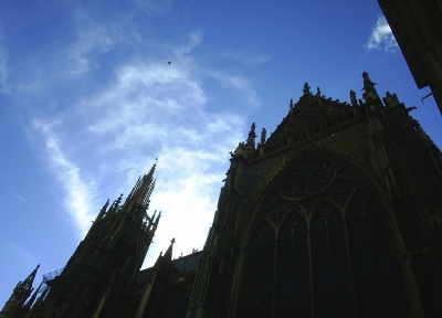 zagen we Sierck-les-Bains aangegeven staan en deden we vanaf Lémestroff een stuk van de Rome route. Maar bij Aboncourt kozen we de weg naar Altroff om via Vigy af te dalen richting Metz. De binnenkomst in Metz was nogal druk vanwege de groete wegen en de avondspits. Maar eenmaal in het centrum waren we aangenaam verrast door de mooie kathedraal en andere gebouwen.