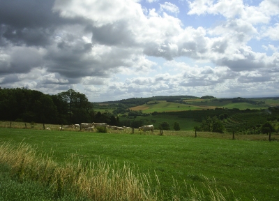 hebben we afscheid genomen van Neletha, Nisma en Jens op de camping, vervolgens nogmaals bij de winkel en nog tweemaal onderweg. Onderweg betekende vandaag: in de Vogezen, met zo nu en dan regenbuien. Vanaf Charmes begonnen direct de Vogezen: vanaf de eerste klim bestond het uitzicht uit bergen met dennenbossen, groene weilanden met koeien,
