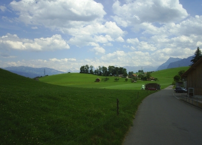 De vierde en laatste klim van de dag, na Radelfingen, zorgde weer voor mooi uitzicht op de Jura en vooral de Alpen. Na een korte afdaling kwamen we aan op de camping bij Hinterkappelen vlak voor Bern, waar we de tent opzetten, macaroni aten, lekker douchten en toen lekker sliepen. Na eerst de Vogezen in 2 dagen te hebben getackeld, toen de Jura in 2 dagen, wachtten nu de Alpen.